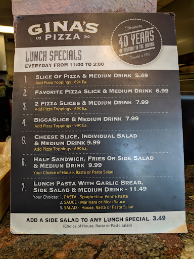 Read moreIf you haven’t been to Gina's Pizza and Pastaria, you're truly missing out! This place is an absolute gem. From the moment you walk in, you're greeted with a warm, inviting atmosphere that makes you feel right at home. The pizza here is hands down some of the best I've ever had—crispy, perfectly cooked crust, topped with fresh, high-quality ingredients. The pasta dishes are equally amazing, with rich flavors and generous portions that never disappoint. The staff is always friendly and attentive, making sure every part of your meal is perfect. Whether you're craving pizza, pasta, or both, Gina’s always delivers an exceptional dining experience. Highly recommend to anyone in the area—definitely...