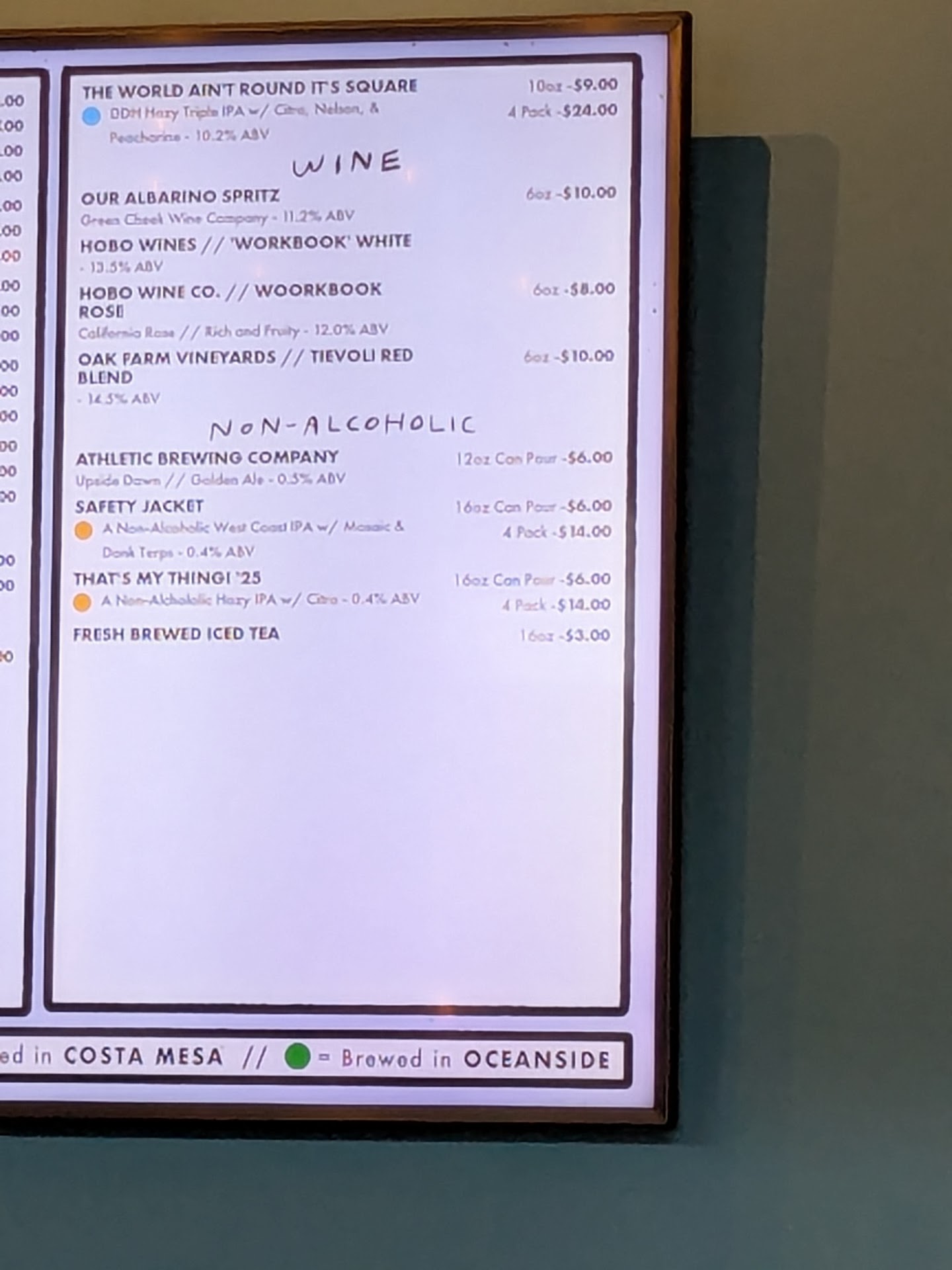 Read moreAs Costa Mesa locals, I never like leaving fewer than 5 stars, but I gotta be honest. Great beer (esp the michelada, IYKYK) and food options (great smash burger and love the battered fries). Outside seating is a great atmosphere with tons of tables.
