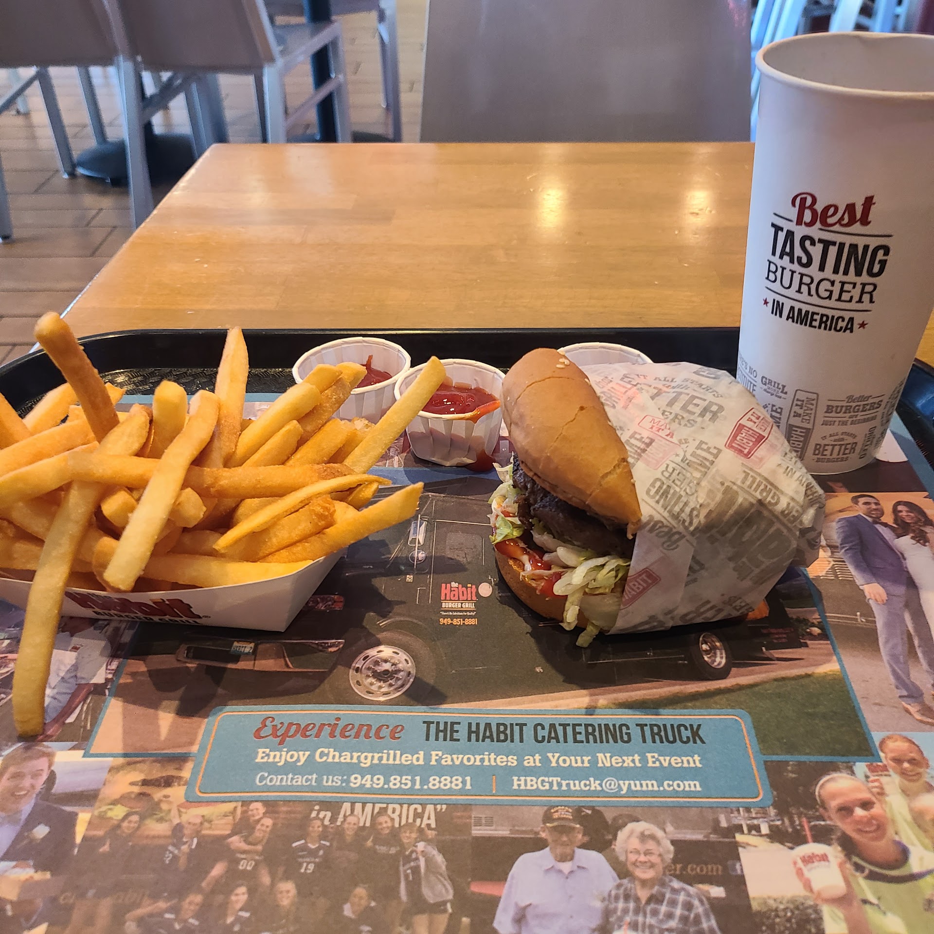 Read moreEasily the worst experience I've had at a Habit. Walked in, no one at the register, no one to greet me, so OK, I'll use the clunky kiosk and place my order there. Kiosk tells me to go to the counter for my drink cups. No one seems interested in acknowledging my presence, so I go and sit down. SMS confirmation also tells me to get drink cups from the front counter. So I go to the front counter, and ask the nearest staff member for my cups. Rather than just pulling them off the stack right there at the counter, he says "just a minute", then disappears into the back and doesn't come back. So I figure I'll contain my thirst until I get the food. Food comes out, staff member 2 simply hands me the tray, with no sign of the drinks. I say what about the drinks. He asks how many, I say two, and he hands me the cups. I mention that I had already asked his colleague for the cups and didn't get them. I don't get an apology or any sort of acknowledgement, but I do get a bit of eyeroll as he walks away. The burger wasn't horrible, but wasn't up to the usual Habit standard. I had the impression that the patties had sat on the grill for some time as they dried out, waiting for an order to come along. The cheese was not at all melted as I normally get from my double char. At least the fries weren't bad, maybe just a little oversalted. Not at all up to the standard I have been accustomed to. I've tried to remain faithful to my Habit habit in spite of the price increases, but perhaps it's time to go for the alternative, where I can get something animal style with better service, a lower price and the...
