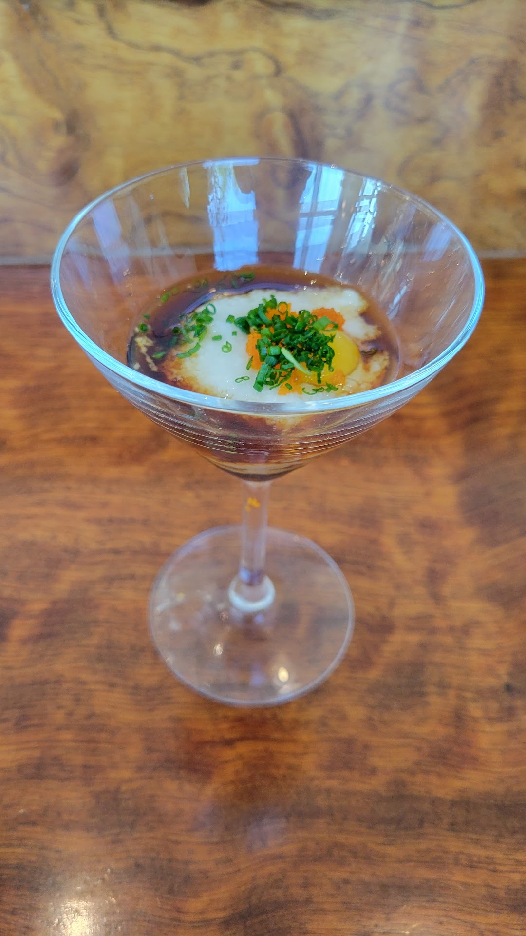 Arrived on location at 6p to a slow evening, but it was nice to have the bar to ourselves. As we reviewed the menu, we started the evening with a taste of sake since we were indecisive on which to choose from. We sampled a choice of sweet or dry and settled on the dry to pair with our meal. To go with the ambiance, each pour is served in a champagne flute instead of the usual you see, so it sets the tone for a fancy meal ahead, in which I was eager to taste.