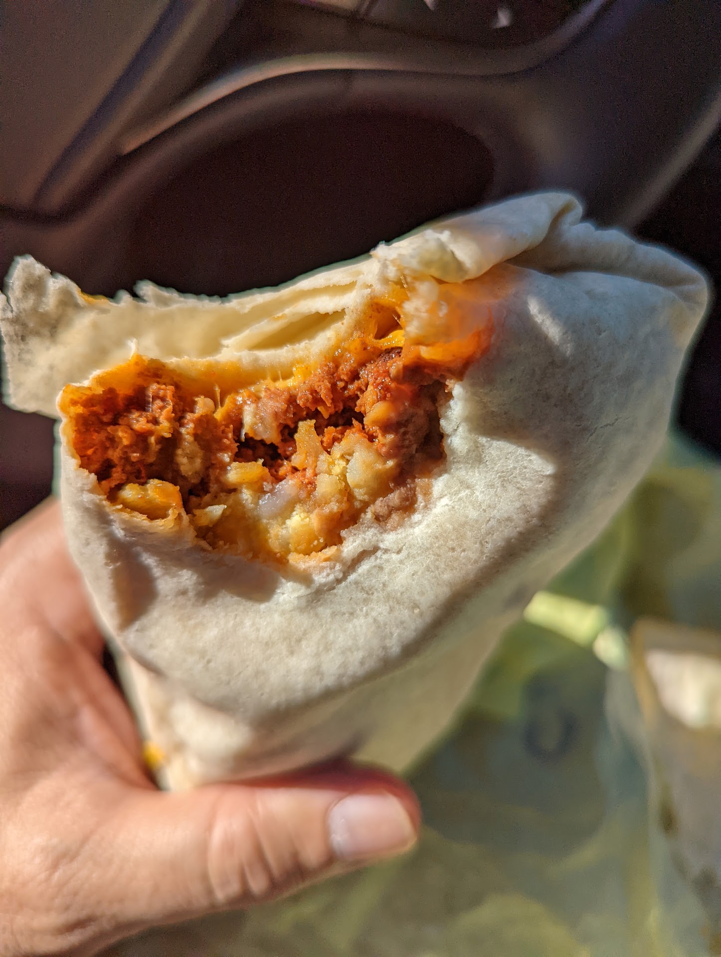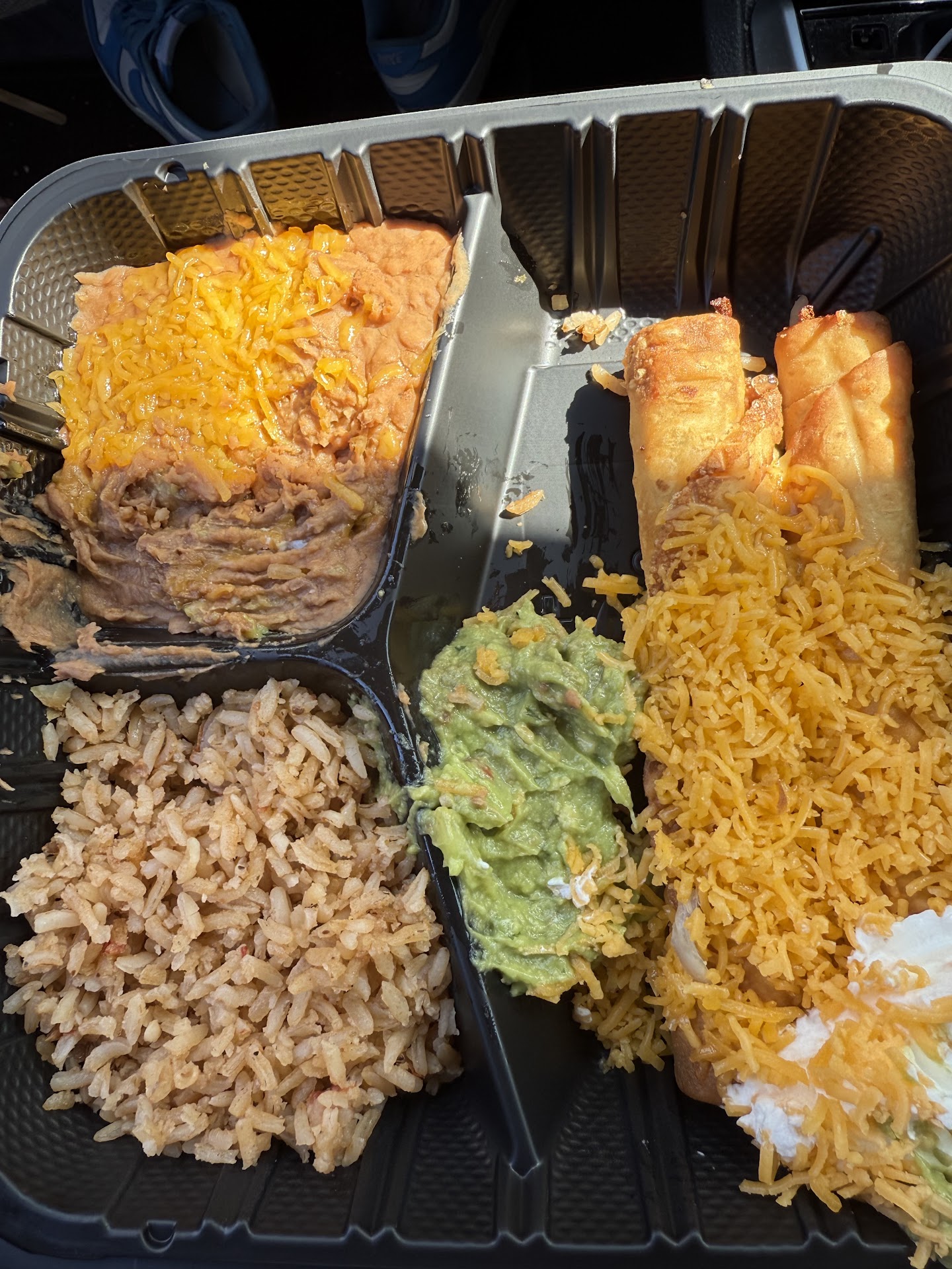 The chicken burrito was just shredded chicken and melted cheese. It was quite plain, but nothing was wrong. Maybe a bit soggy, not exactly sure why. The green salsa kind of saves it for me. The beans and rice were meh.