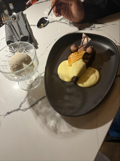 For the main course, I had the eye of ribeye, and it was nothing short of perfection. The chef’s commitment to excellence was evident—a thermometer is used to ensure the precise internal temperature, and it showed. The steak arrived exactly as ordered, tender, flavorful, and plated with meticulous detail. The sauce, poured tableside, was a luxurious final touch that elevated the dish even further.