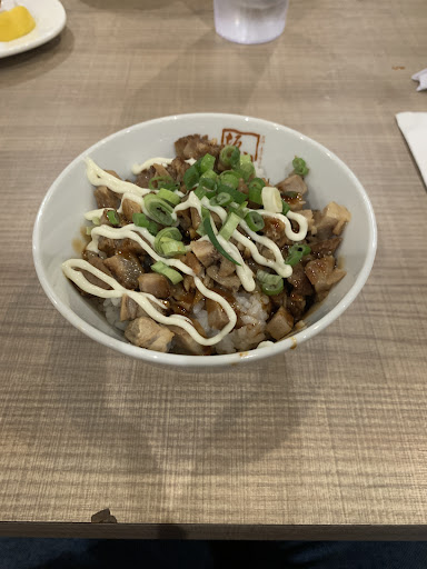 Oh speaking of sharing, their small rice dishes is a good size. At $2.80, the small aburi charsiu bowl is quite filling and the light unagi sauce is quite good with it. I would definitely order it again. We also shared some gyozas from here, which they were kind of small. I couldn't really taste any flavor out of the gyozas. The little dab of green grind peppers on the side were a nice touch but I would say it's not a must order.