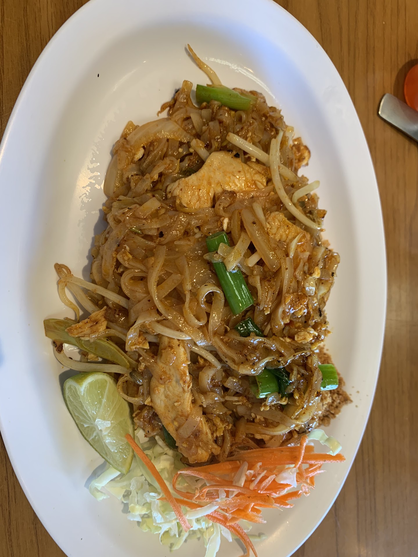 I ordered a small house salad, and when I was unsure if I wanted the vinegar/ soy dressing or the peanut dressing, the staff recommended the soy, and it was just what the doctor ordered. The salad was freshly cut, and it showed. Next on the table was the dumplings/ gyoza, and they were perfect. Just the right amount of fried deliciousness without being burnt. There were six (6) in the order. Finally, the entree I ordered, Pork Pad Thai, was brought over. This was so perfectly seasoned that I almost forgot to add a little soy. The pork and the noodles were perfect in their preparation. It's a good amount of food. It was so good that I have already decided the next time I go, I want to try the Shrimp Pad Thai.