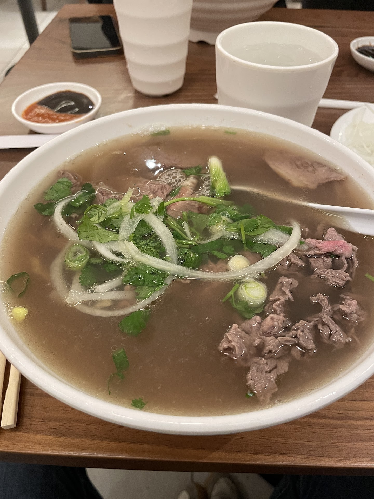 The pho here is mediocre. I find the broth better at other locations because It’s more flavorful and beefy. Although servings here are generous and in a plastic bowl not in stainless bowls like other locations.