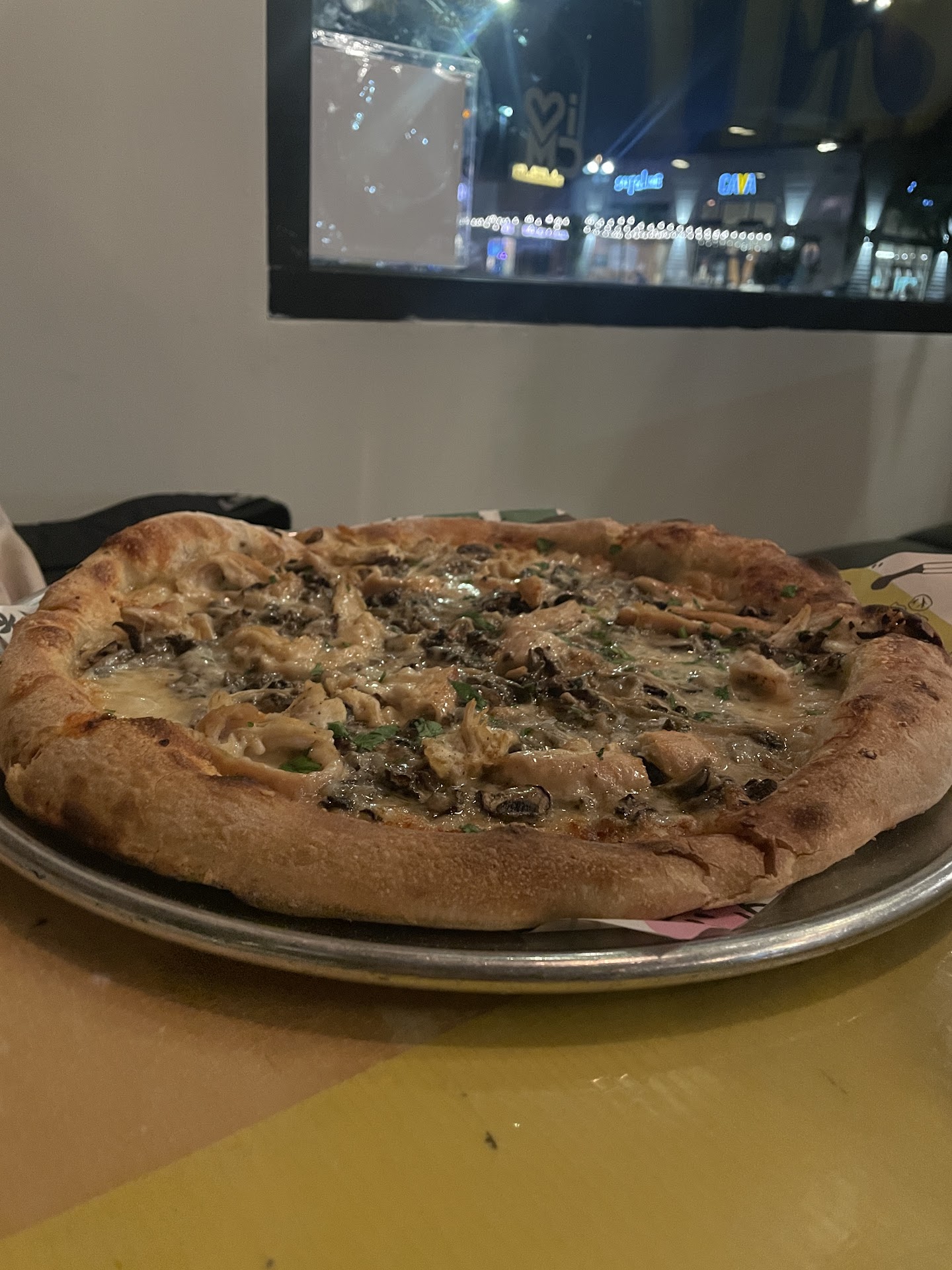 Read moreGreat unique pizzas in Costa Mesa. I got the green eggs and ham, and it's spinach, eggs, ham and cheese, no tomato sauce. The eggs were cooked perfect, runny yolk for a sauce. Thin crust and crunchy. It only takes a few minutes for the pizza to cook. They also let you add more toppings if it's on the pizza already. You get a sausage and mushroom pizza, you can have them put more mushrooms on it. I thinks that's right, somebody else can go and correct me.