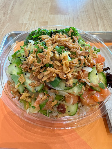 Read moreStopped by a store near by and saw this new poke place just opened. I was hungry for lunch so popped in to try it out and am happy I did. Very clean restaurant, plenty of seating, and you have an unobstructed view of all the toppings behind the glass. I tried the Yuzu Ponzu Salmon bowl ontop of brown rice which was delicious. (Atlantic salmon, cucumber, sweet onion, pineapple, cilantro, ponzu fresh sauce, seaweed salad, green onion, sesame seeds, and onion crisps) I got it as is with no substitutions but you can easily exclude toppings or add them in if you want. I like how they ask how much sauce you want (light, medium, or heavy). You definitely get your moneys worth and the quality is very good. Iâll be coming back to try the other...
