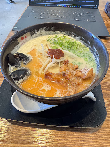Read moreFinally opened in mid to late July 2025. Super long lines out the door the first weekend but i went on the second weekend it was open and was able to walk right in and grab a table. For the ramen purists, my review might not have enough street cred because I ordered the vegan ramen with thin noodles,..but it was delicious. Terrific broth, nice noodle texture, and enjoyable Woods Ear mushrooms. Their hot sauce is also quite good with a real flavor! I wish they offered tofu or chicken as an add-in, but they donâtâoh well. I washed it down with a green iced barley tea. Service was on...