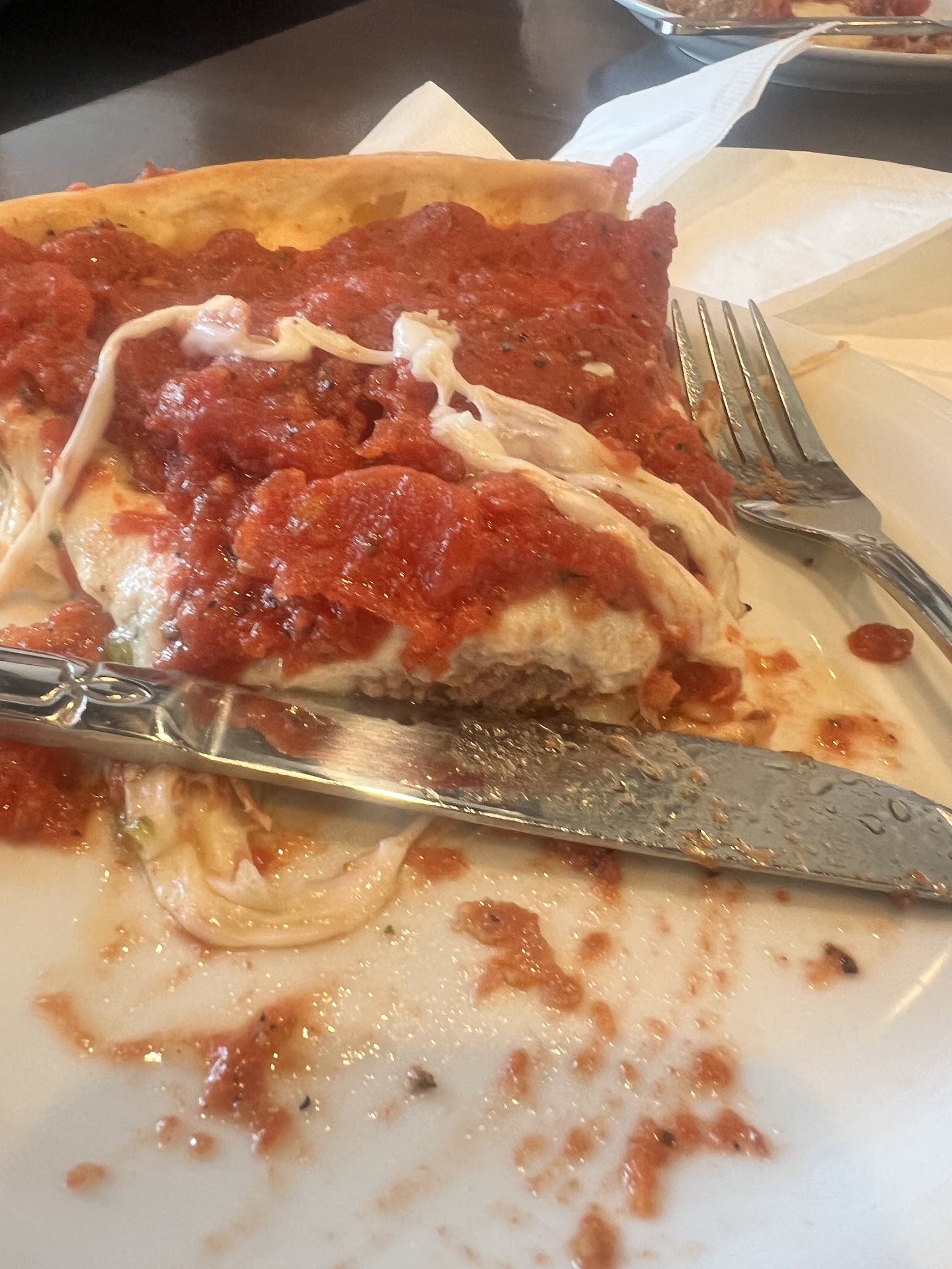 When it finally arrived, we were excited by the presentation—the pizzas looked visually appealing, with vibrant layers of cheese, sauce, and toppings. However, the crust was a huge letdown. It tasted suspiciously like pre-made dough, similar to a store-bought, tube-style crust rather than the freshly-made, buttery crust we expected in a deep-dish pizza.