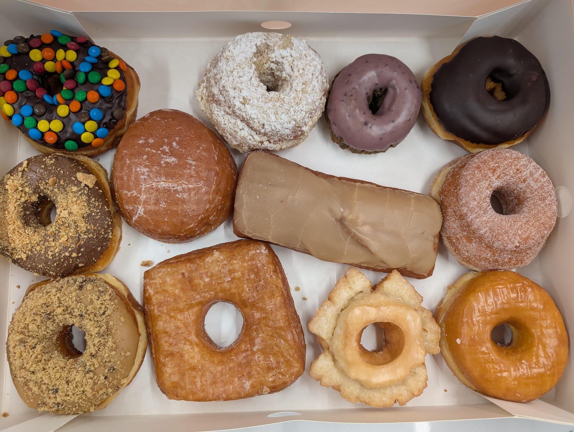 There were a couple others in the box I couldn't ID exactly (maybe filled ones?), but nothing was stale or over-fried. Everything tasted like it had just been made that morning.