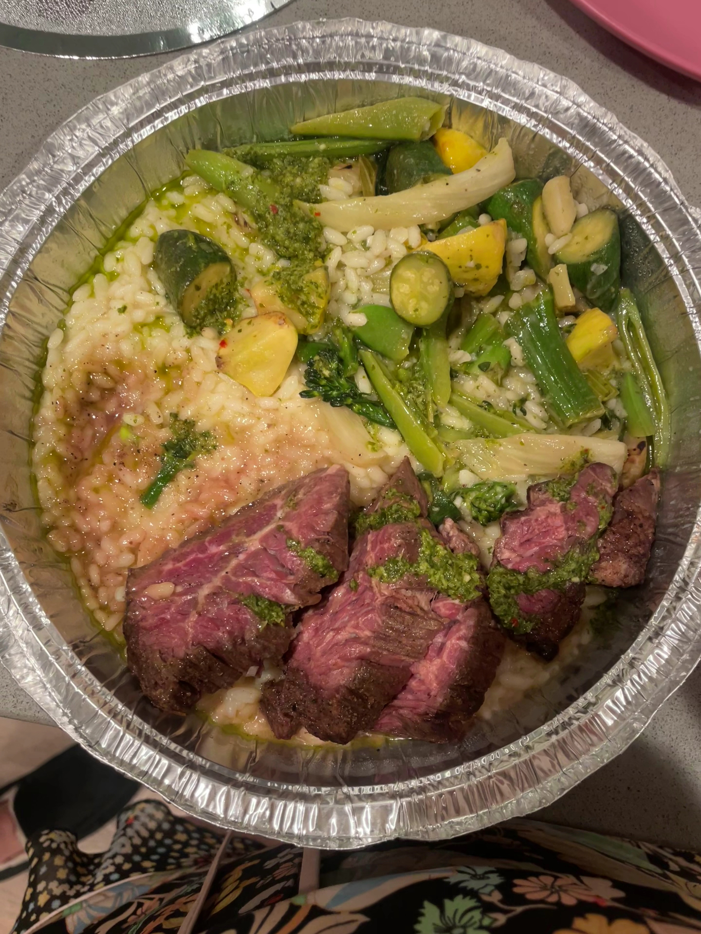 The server brought the risotto to go with ANOTHER fresh steak. I thought in my head “Oh that’s nice.” Thinking that was the chef’s way of apologizing.
