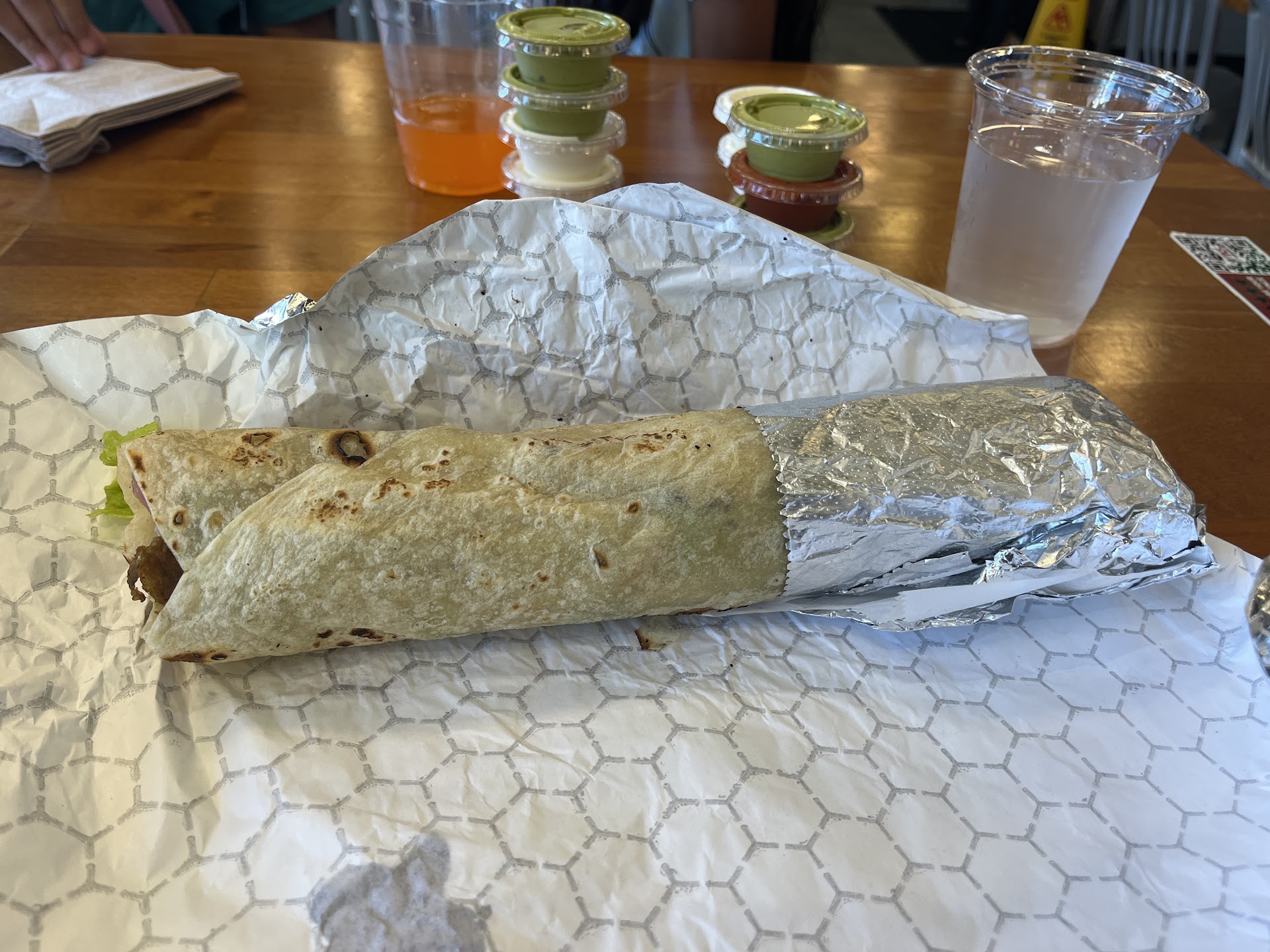 I am obsessed with this place. Everything I've had has been consistently amazing and yummy. I had the San Diego wrap last time but didn't want the feta cheese so the guy actually recommended I get the Fries wrap which I didn't even know that was on the menu but it's basically what I wanted. I also got one of their new sides, I got the plate and had the steak and the brown rice and a side salad. Their brown rice was so soft and perfectly cooked, I couldn't believe how moist it was! I've never had brown rice that good before! So good that I can eat it by itself without any meat! The steak was good, but a little hard for me so I want to try the other meat next time. I always love their chicken here so that's my usual. And the sauces are what's addicting. I love the yogurt and the spicy cilantro! Even their salad dressing is yummy and would actually want it as a dipping sauce. I can't wait to come back here again, definitely...
