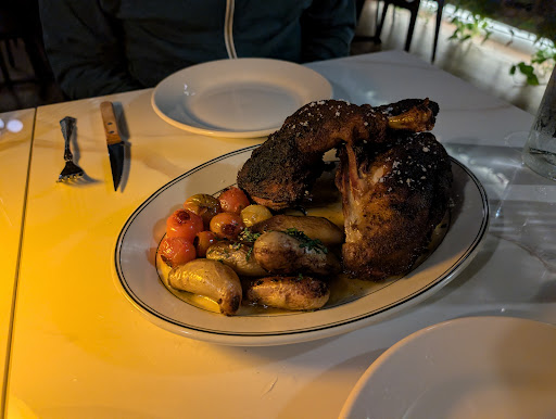 Read moreNice try BUT. Here is my review. Food was disappointing I was expecting so much more. We ordered two entrées. The hamburger for $25.00 looked really delicious in the photos. First the bun was burned black on top not toasted burned. The burger was a smash type burger and cooked well which was fine but had broken in half during preparation and held together with the cheese after starting to eat 1/2 the meat fell out of the burger onto the plate. There were too many sautéed onions and the bun got gooey. The fries were the worst I have had in a long time seemed to have used frozen fries some were clumped together is a mass. I asked the waitress if they made the fries on site and she said no so the frozen type seemed possible, definitely not good. The 1/2 chicken, $37.00 was very small portion a very small chicken used and the chicken was dry, another disappointment. They have an automatic door up front which was quite irritating as you can not close it behind you until it decides to close which means cold air was rushing into the restaurant making it uncomfortably cold when the door was open. The decor was okay but sparse and so it was very noisy inside to the point it was hard to carry on a conversation. Too costly for what was provided by about $10.00 per entree, would...