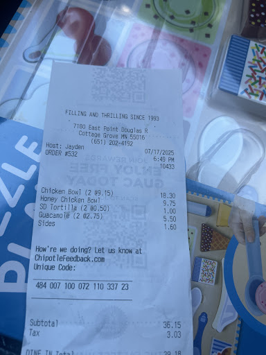 The exception has been the Chipotle in Hopkins, which, in my experience, has offered some of the worst service Iāve encountered. Unfortunately, it now seems like the Chipotle in Cottage Grove is heading in the same directionācharging without explanation.