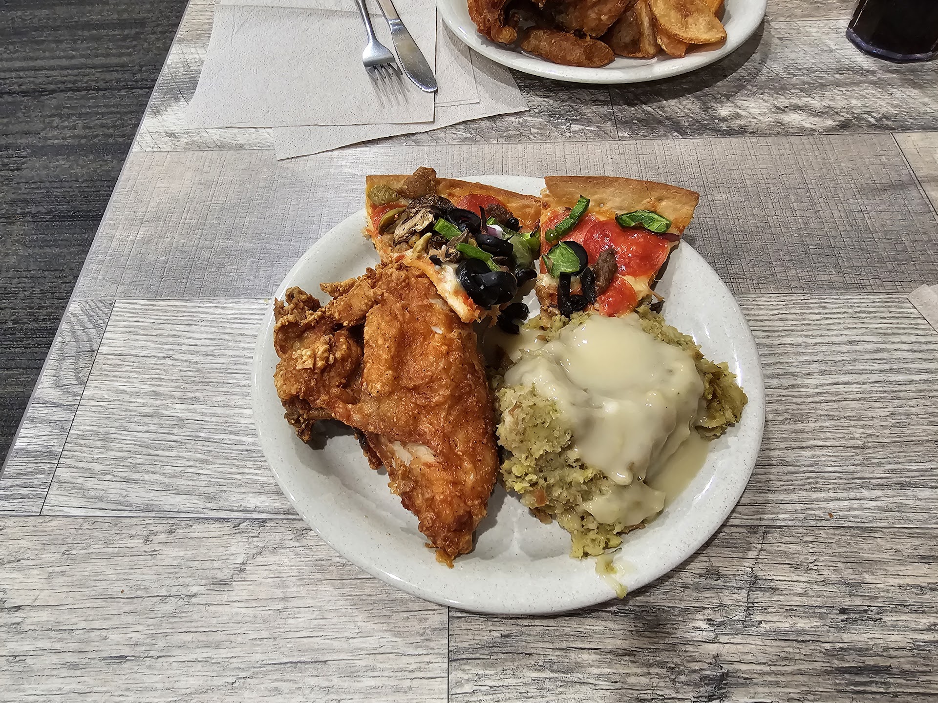 There were only two people seated inside when we arrived. The pizza buffet from the start looked bad. Half pizzas with some that had different pizzas mixed together on one pan looked like they'd been there for a very long time. None of the pizzas were marked which resulted in not only our family but another behind us serving children spicy chicken pizza. The other family's child broke down in tears crying about how spicy it was. Adding pizzas to the buffet was slow going.