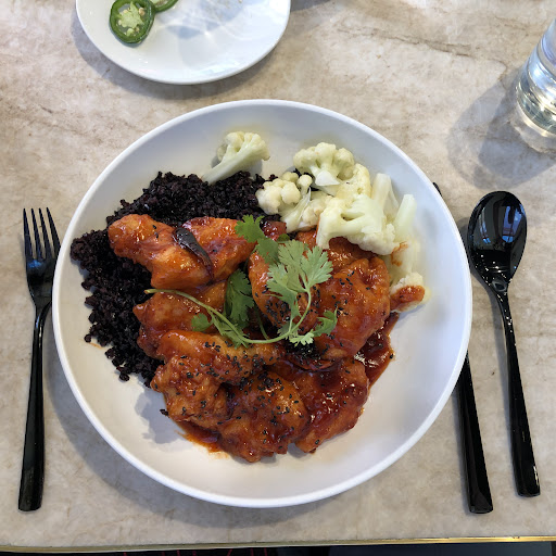 I chose the General’s Chicken and my wife went with the Filet Mignon Pho (with yam noodles since she can’t eat gluten. Side note, they are vegetarian and gluten-free friendly). We were both very pleasantly surprised with the layers of flavor. I enjoyed the forbidden rice and it’s subtle coconut flavor and the way it tamed the spicy/sweetness of the chicken. My wife’s Pho had amazing depth of flavor in the broth, and the filet mignon came out raw (on the side) and cooked lightly when placed in the steaming hot broth. The meat remained very tender and was a co-star of the dish. We enjoyed it despite it being nearly 100° outside. We can’t wait to try it again during the cool and cold months.