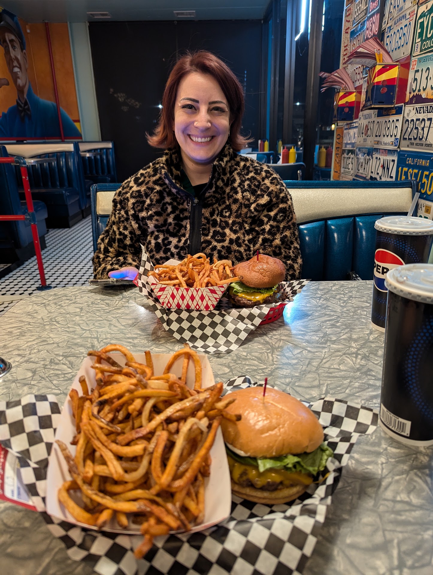 As like everything these days money is a factor. Everything is a la carte- no combos. We got two fountain drinks, two orders of large fries, I got a deluxe burger with cheddar cheese, mayo, lettuce, pickles and grilled onions. My wife got a double deluxe burger, gluten free bun, mushrooms, cheddar cheese, Swiss cheese, pickles, lettuce and mayo. Which came out to roughly 60ish dollars for all of it. We did select items that I expected to have an upcharge. Still, price is probably the only thing I could say negative about this place but unfortunately that's everywhere now a days. It ended up being worth it because of how much we loved the food and vibe.