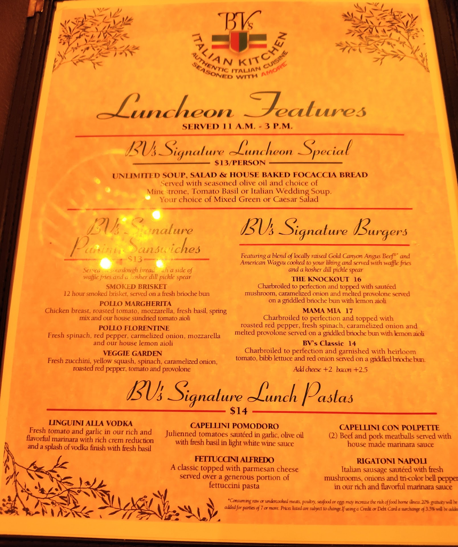 This restaurant is supposedly rated as the best Italian food in Northern Arizona. First, I wanna tell you that I am Italian, I am from San Francisco. I moved out here five years ago third I am also a cook. We waited outside in our car until 6 PM and 15 minutes before that someone from the restaurant called and asked if we were gonna be making it to the restaurant and I said yes we are waiting in the parking lot. (There were 11 of us) We went into the restaurant promptly at 6 PM and had to wait 30 minutes for our table to be made ready plus they put us in the bar area where the chairs were maybe 5 inches too short of normal dining chairs, which made it rather uncomfortable? One side of this long table was near the wall, where you could not pull out the chairs far enough to comfortably sit, my wife had a terrible time trying to get into the chair where I had to maneuver it after she had gotten in it to square her up.I ordered the special soup and salad and focaccia bread all you can eat. I also ordered a lasagna Bolognese.I focaccia bread was OK but nothing special. I had the weddings soup that was bland not a lot of flavor, the salad was kind of wilted and the vinaigrette tasted terrible. Oh, one more thing about me I make vinegar. when my lasagna came, it looked like it was sitting under a heat lamp for a half an hour, flavor was minimal, and it was dry, it might’ve been better if it was directly out of the oven without having to sit for a while. Very disappointed. on top of it, they put a 20% tip on our tags it’s OK if it is just one bill for all 11 people but every couple had their own bill so I don’t believe that the 20% automatic tip should’ve been placed on all of the tags or bills. PS The only thing that was relatively good, was the dipping...