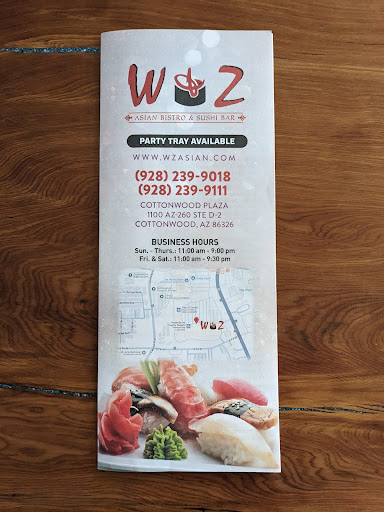 Read moreThis was our third visit to W&Z, we decided to take-out. After calling in the order, it was ready as promised. We zipped home and quickly opened our Sweet & Sour Chicken, Mixed Veggies with Beef and two fried rice orders. As my wife opened her S&S Chicken, it was immediately obvious that it was simply deep fried chicken, with a side cup of orange sauce. No green & red peppers, carrots, onions or pineapple. She first scooped the chicken into a bowl, and while spooning the sweet and sour sauce a large chunk of plastic 2.5x2.5 inches saturated in S&S sauce came up on her spoon. We both were perplexed and placed the plastic on my lid... Trying to examine it, I spread it out and it was clearly plastic. We called to speak to the manager, but the manager wasn't available. My wife explained ingredients we expected were absent, and there was a chunk of plastic in the sauce container. The person on the phone said Sweet and Sour Chicken is only served as chicken, and he was stammering speechless in regards to the plastic in the sauce. Folks, drive to Sedona, dine at the Szechuan Restaurant... W&Z lacks even the quality of Panda Express, and you're less likely to be served plastic in...