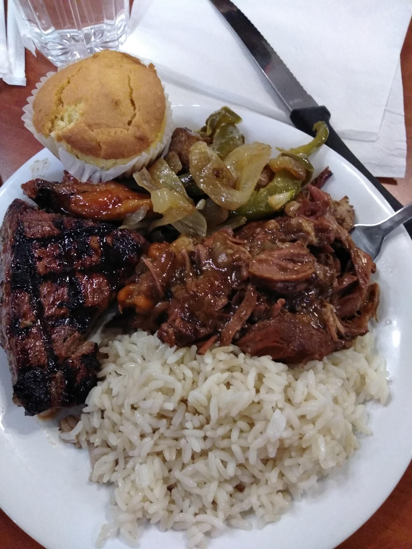After picking up our drinks, we went looking for a table. It was busy, but many of the tables just had plates stacked on them with no one cleaning them. We noticed other parties wandering around looking for tables. They had signs up that some areas of the dining room were closed, but rebellious seniors paid no attention to the signs. We caught the eye of a waitress, who pointed to a dirty table and quickly cleaned it off for us, which was very nice. In fact, this friendly, overworked waitress was the highlight of the entire meal, and she was working her butt off. She told us that they were short that night, so it all made sense.