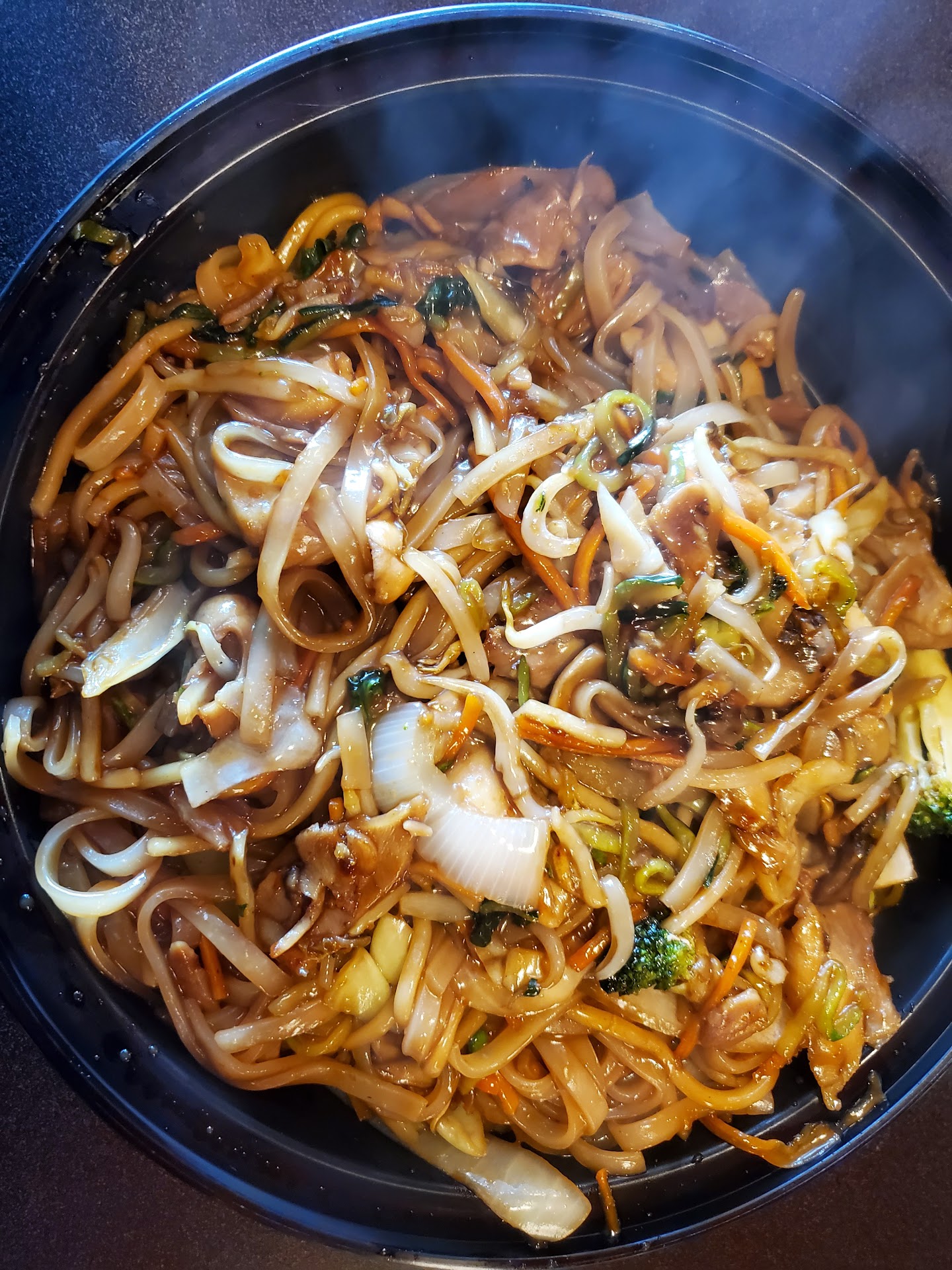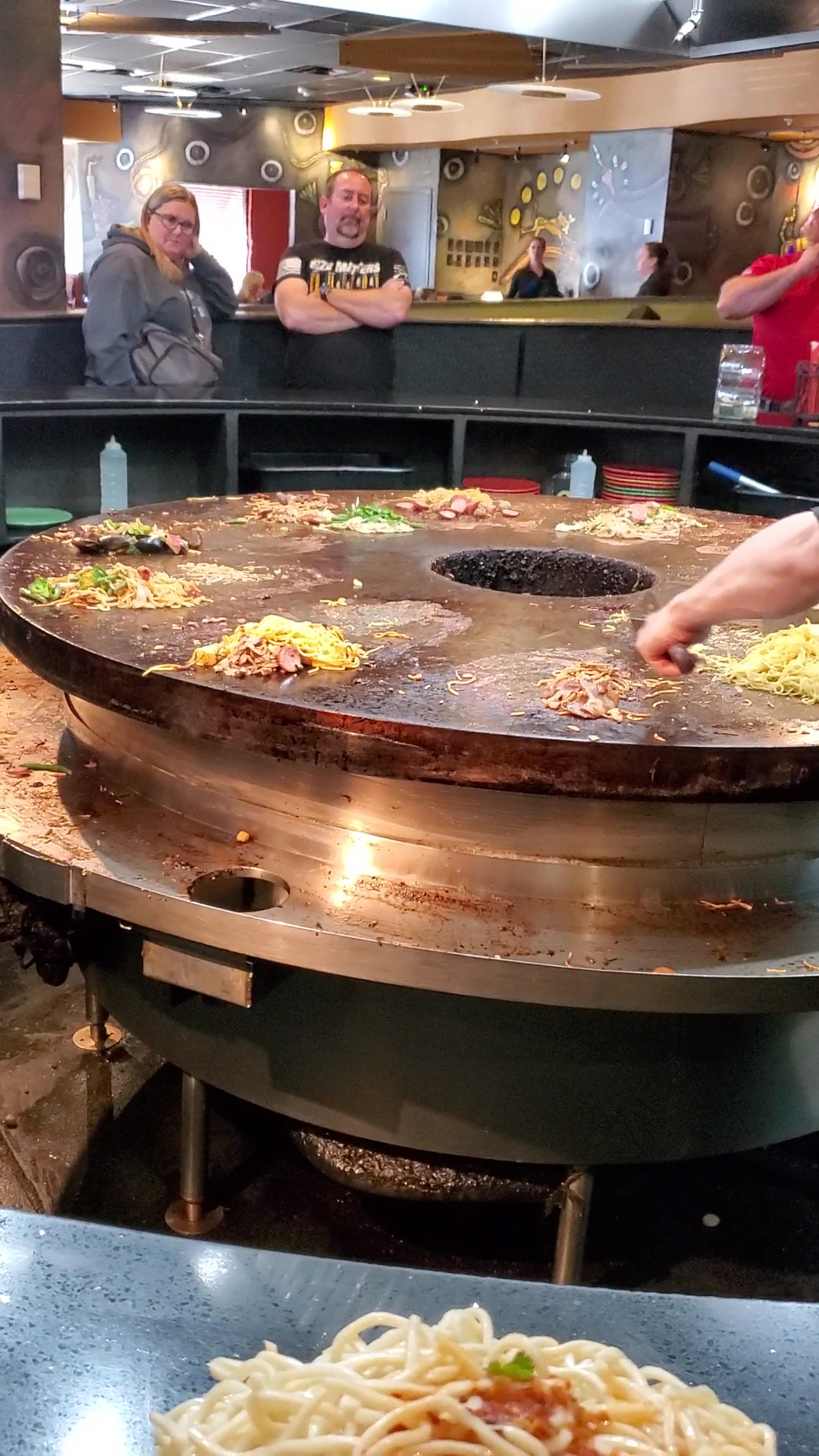 HuHot's a great little restaurant where you can go and select your choice of meats, vegetables, noodles, and a wide variety of sauces and their cooks cook the food on a large circular cook-top.