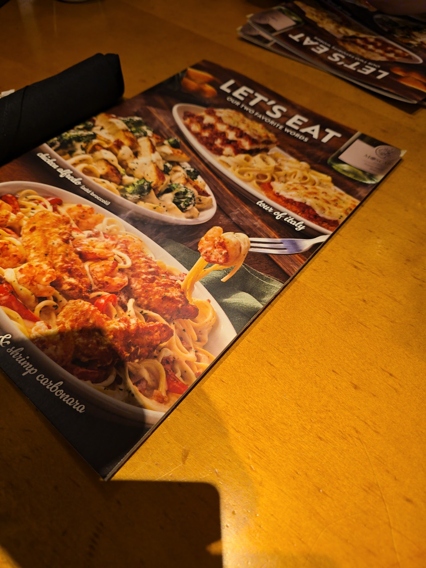 That being said, the food was as delicious as ever. The breadsticks were warm and perfectly seasoned, and the salad that came with my meal was fresh and crisp. The main course, pasta with a rich and creamy sauce, was flavorful and satisfying. The portion sizes were generous, and everything was cooked to perfection. It’s clear that Olive Garden takes pride in their food, which made the poor service more frustrating.