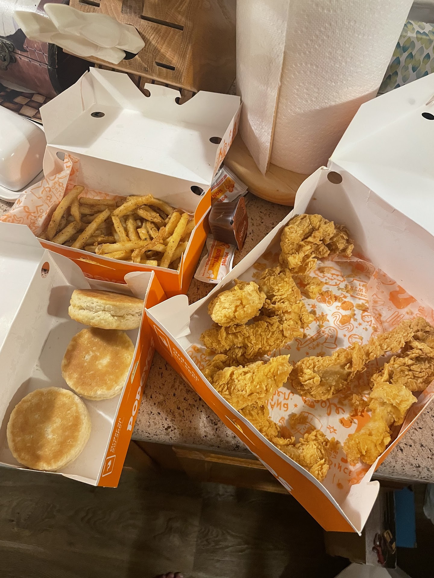 Read moreI ordered a 10 piece family now and we got all breasts and wings no legs no thighs or anything nobody notified us or anything. I am in a homeless shelter so I was unfortunately not allowed to come back and get my food replaced so I called the next morning. Don and Christina will really accommodating and nice and said they would replace it as long as I had my receipt which I did because I ordered it online. Came in to get my order because I was told they'd be there most of the day around 4:45. The manager on duty was really rude rolled his eyes at me was not very nice at all he told me I'm not doing that for you ! I showed him the receipt told him about the conversation I had with the managers on the phone earlier that morning and I told him he was supposed to replace my legs and biscuits and he rolled his eyes at me very rude didn't apologize or anything. I highly suggest being careful about coming to this Popeyes the other managers were really accommodating but this one was not at all. He looked dirty and gross and on top of that there has been ratings for cockroaches there I don't even know why I ordered here but we're homeless we have to...