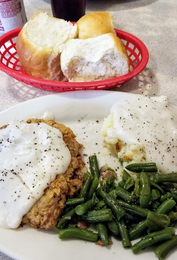 We had such a great time for lunch on Saturday that we went back on Sunday. Our group of 4 all ordered the chicken fried steak. We also ordered a cup of chili and a couple of cinnamon rolls for starters. The CFS was absolutely wonderful. The steak was nice and tender with a nice crispy but not burnt crust. Amy does not bring you steak knives as you'll be able to cut it with a fork.