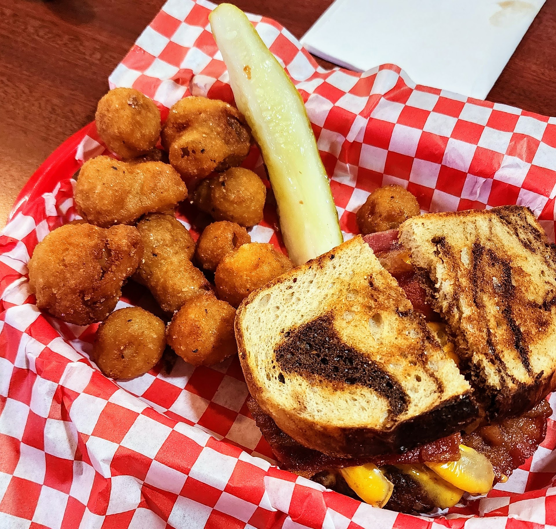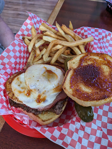 Came in on memorial day for lunch after horseback riding the weiser river trail. Cute little log-cabin vibe. Small menu but decent choices if you're not worried about super healthy choices. Got the Hawaiian burger and onion fritters. Menu says all burgers are served with lettuce, tomato, and pickle spear. When the burger came it didn't have it so I inquired and was told that item and sunrise burger didn't come with them (friend ordered the chili burger and hers also didn't have them) . Waitress seemed a little annoyed when I asked if I could order it on the side, but she didn't charge me extra for them. But my friend ordered the chili burger, which is open face and smothered, and when I asked if we could have some forks, the waitress seemed very much annoyed. She seemed better when she dropped off the checks. Overall good food, burgers were juicy and BBQ sauce was delicious, chili was basic and fries were a little greasy, onion fritters are good if you are wanting an onion flavored hush puppy, but not if you are craving onion rings. Read a lot of good reviews so maybe was just an off day for...