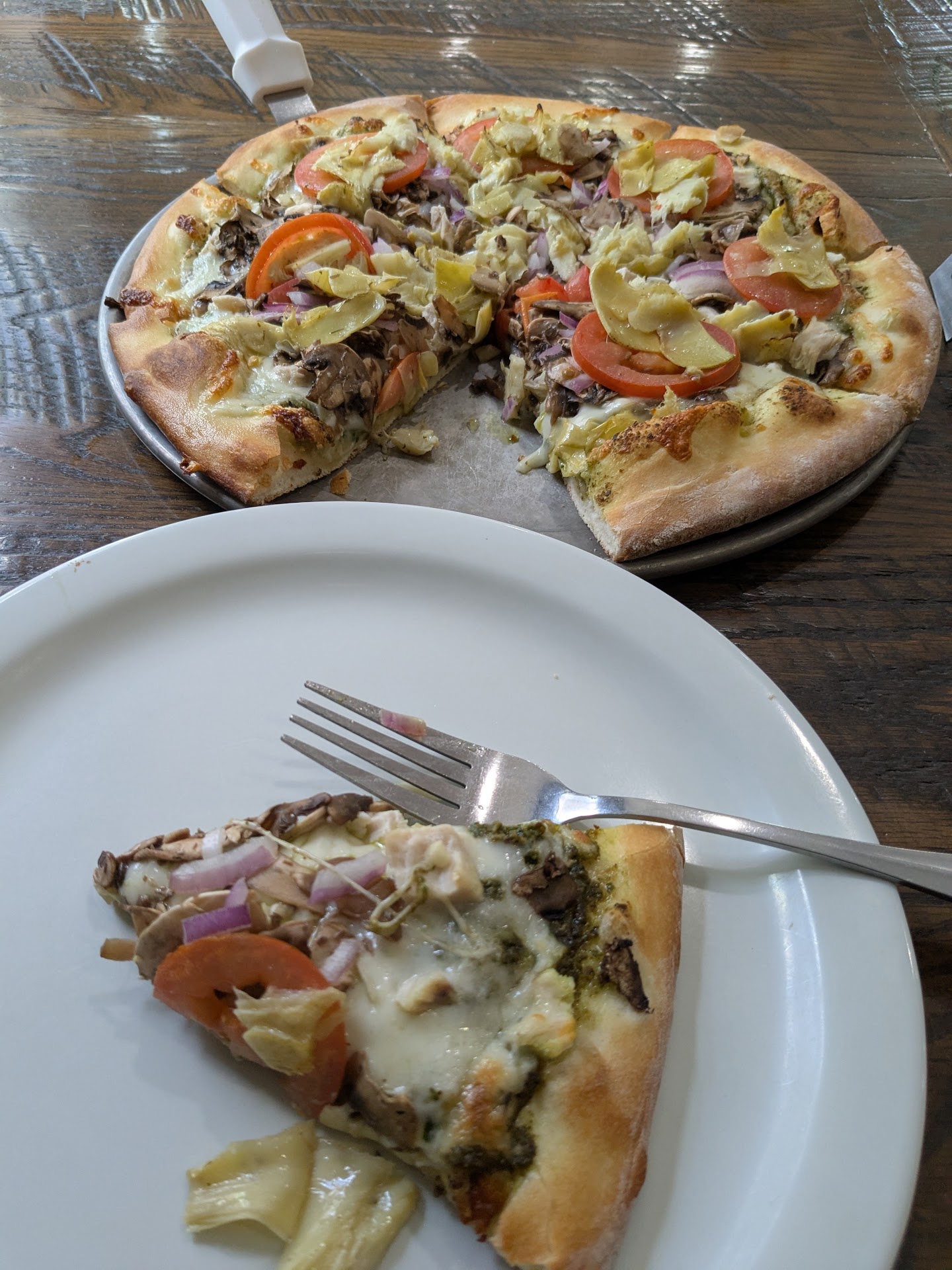Stopped by this little hole in the wall pizza joint around 230pm today. The lady behind the counter was very nice and I asked what she liked in the menu. She told me she liked the taco pizza and the triple s. I asked her about the Alfredo pizza to which she said she didn't like the sun dried tomatoes on it. I asked for no artichoke, she confirmed my request, I asked to replace the sun dried tomatoes with regular tomatoes, and she confirmed my request again. I asked for it to go as I was traveling but figured I would eat a slice or two in the restaurant. She brings it out, I open the box and it's got artichokes all over it. I say "it's got artichokes on it" looking disappointed. She makes the excuse of getting distracted with subbing the sun dried tomatoes for the regular tomatoes and forgot to take off the artichokes. Turns around and goes back in the kitchen without a sorry or offer to remake the pizza, or anything and just disappeared. So I sat there picking off what must have been 4-6oz of artichoke hearts, tried the pizza that was completely flavorless, Alfredo? Not sure but didn't taste like it nor the garlic Alfredo it claimed to be, chicken that was dry and tasteless, that I paid $19 total with a tip included up front. I don't mind if a place makes a mistake that's fine, they offer to fix, and normally I'll say it's fine and live with it. But to not offer any resolution? Horrible customer service. At least offer something, if I say it's fine after that, that's on me, but to turn around and never address it again, pathetic. I ended up tossing the...