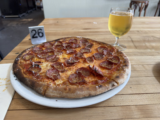 We got The Pasture pizza and it was outstanding! The brocolini was crispy tender, the bacon was very meaty and perfectly flavored the 'za. The thin crust was also outstanding, charred perfectly in the wood-fired brick oven, thin enough to find ld but crispy enough to not say when left flat to support itself.
