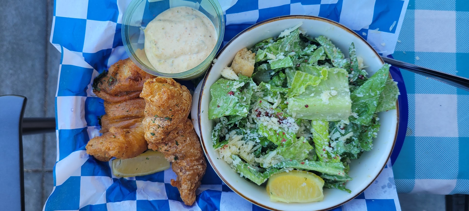 Read moreHave lived on Whidbey (40 years) we don’t eat out a lot, but I love trying new places. We went on a Saturday night about 5 pm. There was 2 parking spots in the lot plus 1 handicap, but additional parking on the street close by. Restaurant seemed about 3/4 full, still plenty of seating. I appreciate the door was open because it was hot and gave our table a little breeze. I don’t each much, so we normally share. The fish and chips come with a 2 piece, so my husband ordered 2 extra pieces for $5 each piece. We were with 2 others who also shared and got an additional 2 pieces of fish. They also ordered the large ceasar salad with chicken. The salad actually fed the 4 of us. I liked the salad it was fresh and not over dressed. But the croutons were hard and stale tasting. Everyone liked the fish, pieces fat, tempura batter. My husband not thinking just gave me a piece not thinking it was a skinny piece. All other pieces were decent size. The outer crust was crunchy and fish moist. I liked the tartar sauce. I’m not a fan of shoestring French fries. I didn’t notice they had malt salt on them, but my husband did and really liked it. 2 of us got the blended margarita and they were really good. I tried a friend’s piñata colada and it had a fake taste to me. We all took a poll. My husband and I both gave it a 8/10 my daughter 7.5/10 and her husband 5/10. I don’t know why he rated low I didn’t ask him. I’d go back and try it again. The wait staff always had a smile on their faces and looked like they...