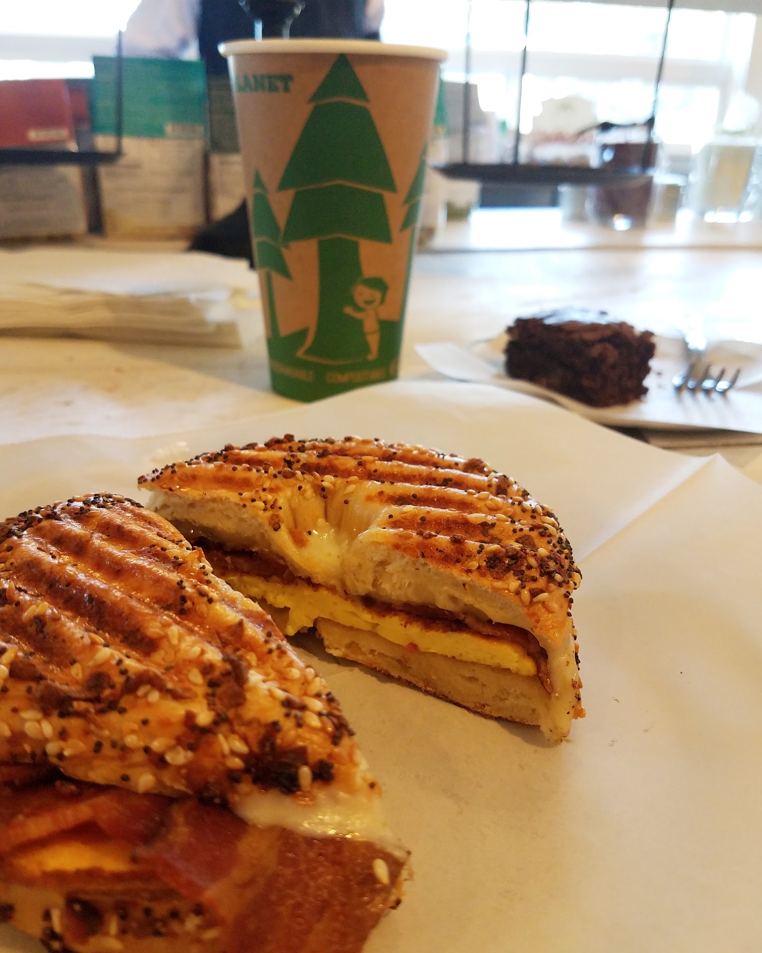 Read moreThis was our favorite place for coffee (really, really good) and food. There are plenty of vegan/vegetarian options. They will take your reusable coffee mug and also offer real silverware as a matter of course (they also have a lot of plastic in plastic, like straws and silverware, which was frustrating but at least they give you options). Vegan burrito was gargantuan and filling, and the vegan oatmeal "cookie pie" with vegan butter was better than any dairy-based dessert I've had.