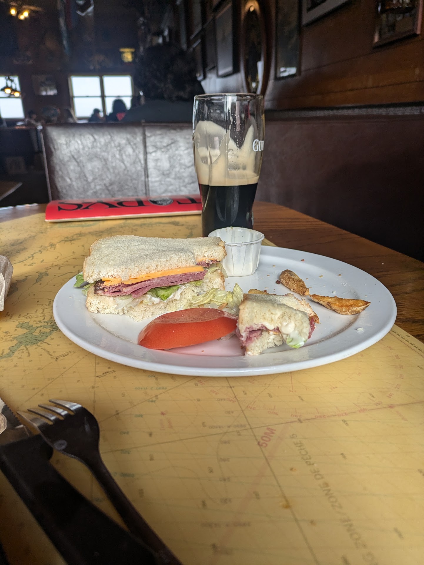 The waitress was a little friendlier and quick to take our order, bringing the check was a different story. We all ordered something from the taps. My husband ordered the mushroom Swiss burger, my friend a medium rare steak, and I ordered the Reuben. Husband says the burger was âalrightâ but nothing to write home about. My friend said his steak was good but over cooked. My Reuben was good with the exception of an old oil taste on the bread. We waited but our gal never came by again so we flagged her down for the bill. Again, she didnât return. We left the $$ on the table and yes, we still left a tip because work was done and some effort put in.