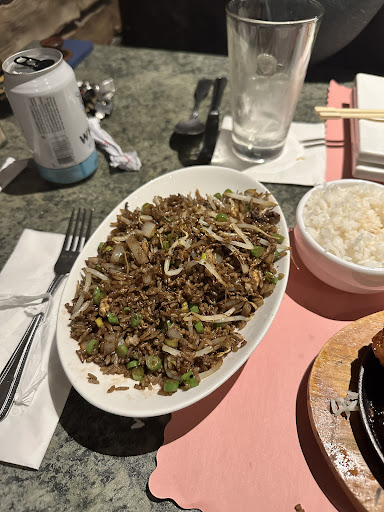 I had teriyaki chicken and fried rice, which came with a salad. The dressing for the salad was a sad, shelf-stable version of the normally delicious ginger dressing. The fried rice was extremely dark, so I thought it would be overseasoned and too salty, but it somehow tasted like nothing. It was really weird - no garlic flavor and not even any soy sauce flavor. The chicken was extremely tough. I had high hopes since it came out on a sizzling hot skillet, but it was inedible. The teriyaki itself was okay flavor-wise. I normally never speak up, but the food was actually so bad that I told the waitress.