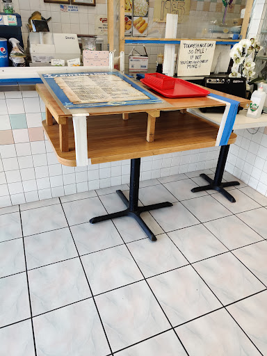 The place is still in pandemic lockdown mode. There a table separating the customer from the cashier and the use a box on a stick to collect payment and hand you your food.