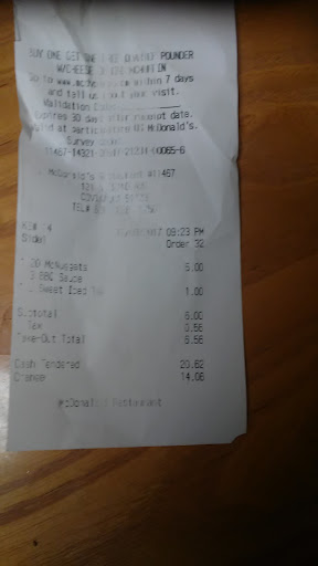 Read moreToday I ordered a Big Mac combo with a large sweet tea half cut and a Fish Fillet. Now, large drinks cost 79 cents more here than at other local McDonalds, but they charged me an additional 10 cents for a large drink. When I got to the window to receive my food, I was given a medium french fry. I asked why it was not a large fry since I had ordered a large drink, and the lady said that the one who took my order ordered a medium. I asked "why", received no answer. A few weeks ago, I came in and ordered only a large sweet tea half cut. When I got up to the window to pay, the gal at the window ignored me for what seemed like several minutes, so I pulled up to the food window. I handed the lady my money, and she immediately walked to the back. The tea was sitting on the counter, but she did not give it to me until after a few minutes while she got my change. Then, I discovered that it was 3/4 full of ice. Frankly, I am not impressed with the "service" and believe that I will just frequent the other near...