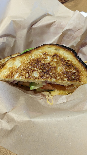FOOD AND DRINKS 5 Stars I am in love with their chicken salad sandwich. I've never had a chicken salad so good--I usually don't like chicken salad because I hate celery--but they ground everything up so finely that it comes out more like a delicious spread than a chunky salad. They serve that sandwich on a kaiser roll complete with poppy seeds, which just makes the east coaster in me super happy. I've never tried the chicken, but it smells quite good. I've also not tried the pizza.