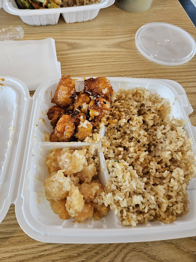 I stopped by to check this place out and ordered fried rice, lo mien, sweet n sour chicken, bourbon chicken, peppered chicken and coconut shrimp. They give a lot for the price so that's a plus! The fried rice was pleasantly "light" tasting and not heavy with the burnt oil like taste that a lot of Chinese restaurants have. It has a hint of sesame oil so most people might think it's bland. The entrees usually have some kind of sauce so if you pour that over your rice it's pretty good. The lo mein was okay I'd like it to have a little bit more vegetables. The bourbon chicken was good but I liked the peppered chicken better. That was delicious. The sweet n sour chicken was good too but it's the same to me like at any Chinese restaurant. There's nothing more or less that made it better or worse. The coconut shrimp was delicious! My only complaint about that is I wish they didn't mix it in with the sauce because the fried shrimp isn't very crispy anymore. So it can get kinda soft to soggy depending on how long it sits. The restaurant was busy when I went so it felt a little warm inside. They should probably put the ac on for diners sitting inside and eating. All in all I'd definitely come back. Quick and...