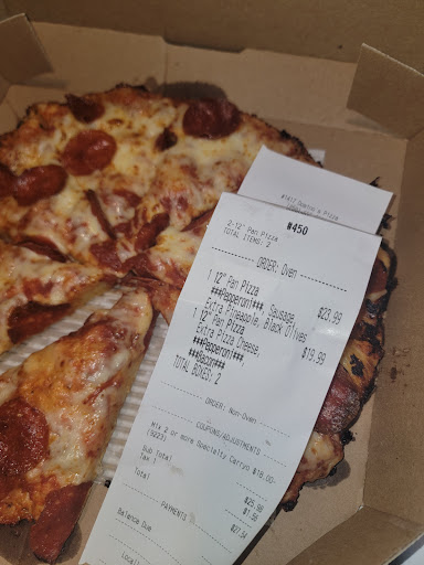 Read moreWe ordered Wednesday and the food was good except our brookie was black. Hard as a rock, no way they missed it when cutting it, even the cuts were wonky. Two days later, today, we ordered again, my son has a friend sleeping over. The 16 piece loaded chicken bites I ordered came with nothing on them but some buffalo sauce and there were only 10 and cold and shriveled. The pizza was old and cold, it clearly hadn't been made for our order. Their delivery times are quick, this pizza was hours old. The parm bites we ordered have almost no butter or Parm on them. We order pretty regularly, and this isn't how they come usually. I called the store and a lady offered to send a new pizza and chicken bites. I thanked her and we hung up. Five minutes later, a man calls me from the store. He says, oh she was just trying to be nice, but we're going to need to see and take the food back you got. Um, okay? He was rude about it. But no prob, cuz it's not what we ordered and it was old. So they did send a new pizza and chicken, but we already had our dip and Parm bites for 45 min and I have two hungry teen boys waiting. Just over bad customer service and bad quality control from this location. When they get it right, it's good. But they are hit or miss. When they don't get it right, they're usually rude about it. When the driver brought the new food and took the old, he wouldn't even look at me when I was trying to get the manager's name. He said, it's either Mike or Dustin I think. You think? How do you not know your manager's name? Anyway, avoid this...