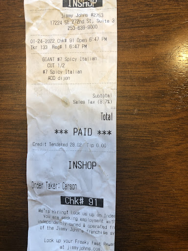 I went in ordered a sandwich and bought a bag of chips to complete my purchase. My form of PMT was a Jimmy John's gift card I was using for the 1st time. For some reason the card terminal wasn't reading the card after I and the cashier tried swiping several times. Her excuse was funds were never put onto the card even though I had already checked the balance a few days prior. I stepped aside so she could take other orders while I pulled up their website to check the balance and boom! $10 on the card. I showed her and she went to the back to call the general manager. She came back out and manually typed my card into her computer , which I was thinking she should have done that after swiping didn't work. The order was successful. I told her thank you and she said nothing back . I asked her for her name she said Brooke but my receipt showed Julie. Anytime I want sub I'll take my business to...