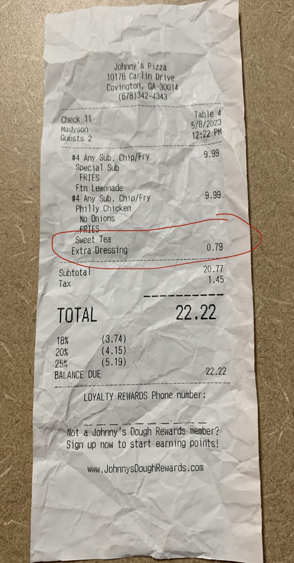 Read morePlease be careful when using this restaurantâs website vs. Doordash, Ubereats, etc. I placed my order 13 days ago on their website and at checkout I did not realize there was a glitch until after processing my payment. Three pizzas were ordered instead of 1 and there was also a duplicate order for one of the subs ordered. Once the mistake was realized, I immediately contacted the Covington location and called Doordash, as they were to handle delivery. I was pleased that the store cancelled the order as requested and agreed to proceed with the corrected order. Unfortunately, I was told that they would not be able to process the refund; it would have to come from Doordash. No worries, or so I thought. I cancelled the order with Doordash, who promptly told me they would not be processing the refund and that it would have to come from the merchant. Again, I thought no worries, must be a miscommunication. I simply placed the corrected order and then called Johnnyâ back. After a lengthy conversation, I was told I would need to speak with a manager. I called back after a couple days and began speaking with the manager, who assured me she would resolve the issue. After Christmas I contacted the store again since I had yet to receive my refund of $178.98. This time I was told they were waiting for a response from Slice. (??? No clue why). Called back again on Monday the 30th as no one had reached out to me, despite having my information. Again, lengthy conversation and explanations but assured the situation would be resolved. This time I received a call back from Johnnyâs stating they had been told by Doordash that a refund had been processed on Dec 22nd, the day of the original cancellation. Not sure which entity was lying but I decided all 3 parties needed to be on the call. Once we were all on the line, the Doordash rep reiterated that they are not responsible for the refund. And when I looked up the phone number associated with the charge to my account, it came up as Johnnyâs Pizza Buford, GA. The manager then said she would contact me once she looked into this and give me a call back. Almost 24 hours later, no call back. I reached out again on Jan 2nd and spoke with a gentleman who told me this was an issue for the owner to handle. Soooo again I must wait. I am so not the wait and see type. As of this evening, a refund has still not been issued. This was my first time dealing with this restaurant and I can guarantee it will be my last. The pizza was decent, not true NY style but still...