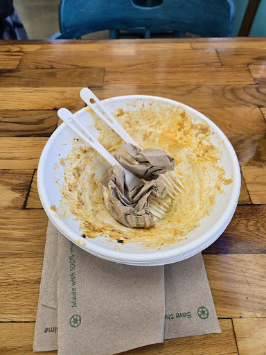 i ordered online and picked it up and there was no one there and one guy working there. my order was ready before the estimated time it would be ready and when i picked it up the guy working there was nice. i ordered a regular bowl and asked for only 1 scoop of rice instead of the usual 2 scoops in my bowl in the special notes but when i got home to eat, i received a large bowl with SO much rice like the rice was 80% of the bowl! it also tasted kind of weird and not like usual but it might’ve just been because i got pickup and it was in a warm car on my lap for...