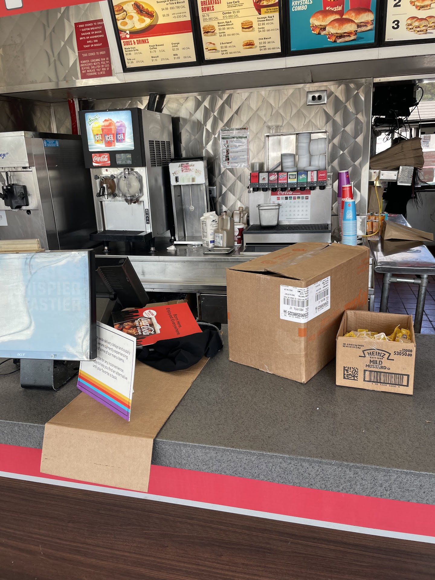 Read moreAbsolutely terrible experience all the way around. I pulled to the drive-thru for my mobile order pickup as the app said to go through the drive-thru abruptly and with a harsh home they told me to go inside with no explanation. Upon entering the entire facility was dirty, floors were dirty, countertops run clean and the kitchen was the dirtiest of all, the counter. Had lots of old receipts and a few boxes just lying there. I then asked why I had to go inside and they said all mobile orders have to be picked up inside, and throughout this entire experience the all of the staff were borderline rude and they were also arguing with each other loudly door. Other guests were staring at the kitchen while trying to enjoy their meals. Then they told me they were out of chicks which I paid extra for and then they also told me they were out of fries which were also on my order. I asked if they could just remove those items for my order so I'm not charged for them and they said no. I asked to speak to the manager and after about 10 minutes of waiting wall the staff were still yelling at each other. I just walked out. Never going back to this crystal. It's a huge disappointment for the chain which is one of my favorite go to...