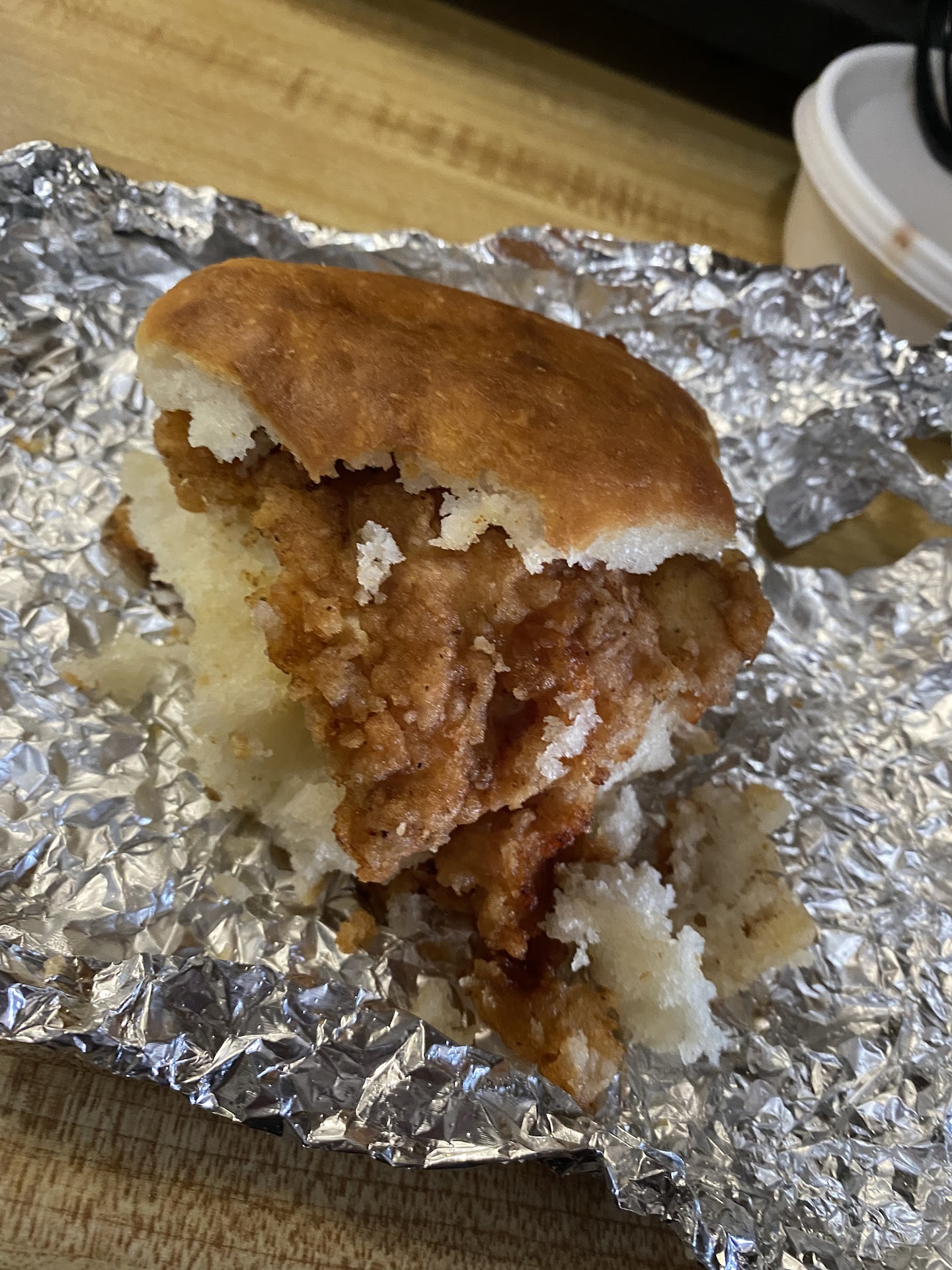 We didn’t dine in, we grabbed food to go; so there’s no “it cooled on the table” excuse. The “biscuits” were desiccated artifacts from the Museum of Dry Things. Picture a nine-day desert trek, then an overcooked Popeyes biscuit abandoned on a dashboard. Drier than both. The eggs were ice-cold, the cheese barely thinking about melting, and the whole bag felt like it took a detour through Antarctica. Not “to-go,” “to-chill.”