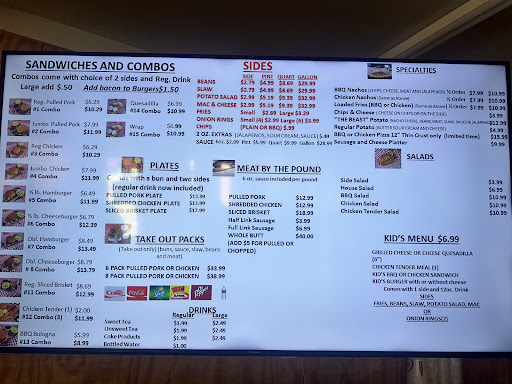 Very disappointed! My first and last time in this place. It was bright and clean and friendly. The order board was big and readable. I ordered a cheeseburger combo for my 7 y/o granddaughter which they asked if I wanted a jr burger for her? In my mind all jr burgers are small so I told her no a regular burger was fine. I ordered a jumbo pulled pork bbq sandwich combo for me. After ordering it was time to pay, I was offered to add a tip, it took me by surprised and made me mad too. A tip is for good service performed by a waiter or waitress. Not a person taking an order to go. I get home with the food and look at the portions of my jumbo bbq to her regular burger (look at the picture cheeseburger on left my jumbo bbq on right). Combo comes with 2 sides and a drink. We both choose fries which were small thin fries that where hot leaving but cooled very quickly. Beans were good and she liked her Mac n cheese. The bbq sandwich was dry (not the meat) and lacked a lot of flavor I did order mild but mild don’t mean flavorless just not spicy. The only bbq flavor was from the small amount of sauce put on the bun. I ordered slaw to add to the bbq but it just wasn’t the kind of slaw I like. The prices in comparison to other bbq places here local are about 2 dollars more per burger/bbq. I paid extra for the slaw and no deduction for not...
