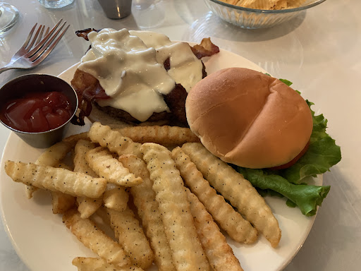 Arrived before 1 PM on a Tuesday. Although the place was half empty, it took a while for the server to show up and take our drink orders. The table had not been cleaned since the previous customers and there were water rings and crumbs in front of us. She didnât actually clean our table until the rolls had been served and weâd started eating. So while weâre eating, she cleans the table and we are overpowered by the smell of disinfectant cleaner. We wanted soup, but they were all out of soup for the day. So we went for the special written on the board right next to our table, but the server said that was yesterdayâs special. So I went for the Philly steak panini, and the server said they were out of that as well. It was one of those âwell can you tell me what you DO have?â situations. I settled for a burger and fries. The burger was nothing special - it came dry with no condiments, and the server didnât ask me if I wanted any condiments.