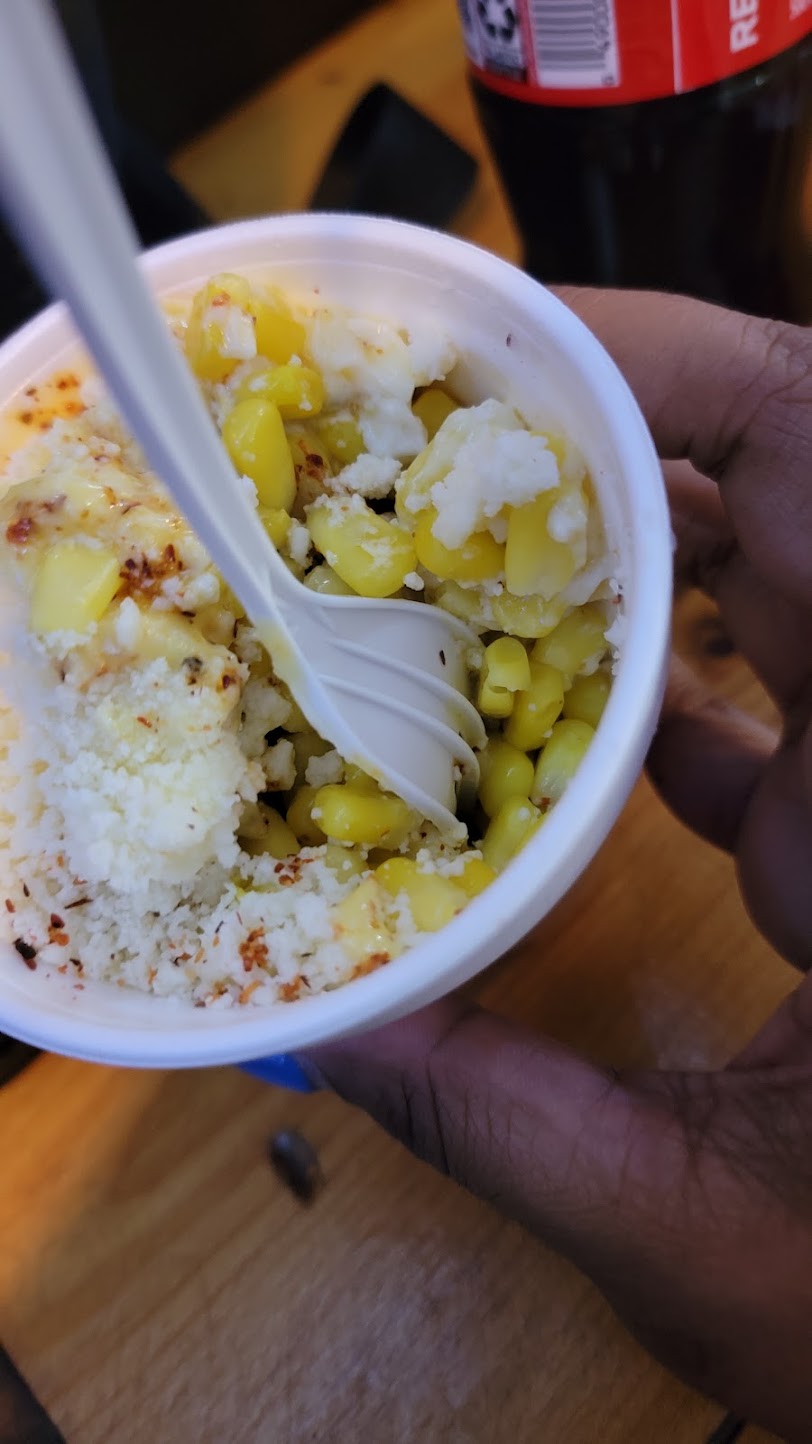 I'm from Texas and I always search for good Mexican food or any type of authentic Mexican tacos or street corn AKA elote, first time being at this place ordered a loaded Frito chili, got a quarter of a bag of Fritos mixed with some lettuce and corn no chili, salsa or meat substances, also the elote corn is supposed to be mixed with mayonnaise lime and chili what I received was a corn on the cob on a stick with regular Cheeto dust on top and a ledge of lime, didn't even eat my food till I got back to my house and added some chili and hot sauce to spice it up because definitely had no flavor and tried to eat the corn dusted with Cheetos even though I wanted Hot Cheetos or some type of chili seasoning as described on menu but got none of that and paid about 15 bucks for all of this which was worth about $5 in my opinion definitely will not be back and definitely disappointed and will still be searching elsewhere for some real Mexican food.. I added pic of what Elote is supposed to be, not corn on the cob with Cheeto dust on it. Feel...