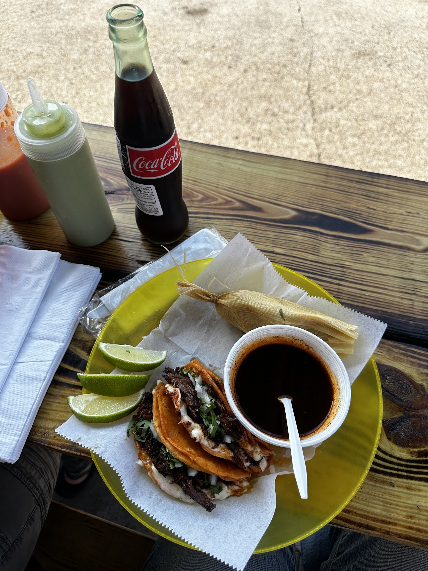 Read moreThis place needs WAY more attention. This is some of the best Mexican I've had and the pricing is great. To start, they have so many options of protein that even the pickiest of eaters could find one to eat and based on what my group had I'm sure it would be fantastic. Next is they have Tacos, tortas, burritos, sopas you have plenty of options for what to add the protein you choose too. I got the barbacoa, carnitas, and quesa-birria and each taco was bursting with flavor from both the meat and the salsa on the side I added on. Price wise 3 tacos and a Mexican coca cola for $15 especially at the quality level it was, is shocking and really made it feel like money well spent.