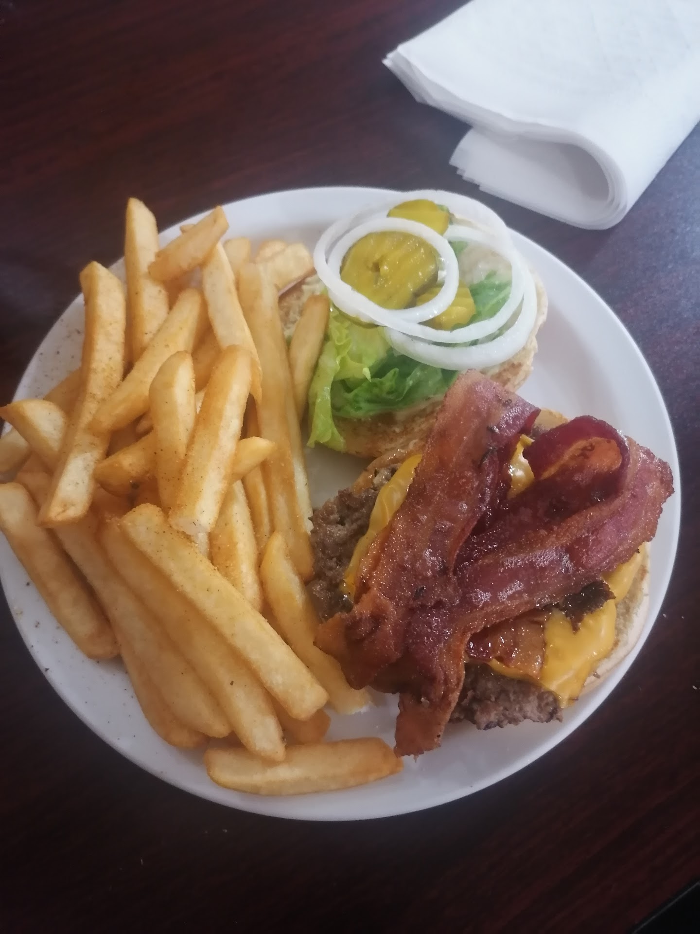 Read moreLunch time and I didn't feel like fast food. I had read the reviews here a couple of months ago stating how good the burgers were so I'd figure I'd try em out. This wasnt my first time in this establishment but first time getting something to eat. It took the staff about 12 min to cook my two burgers (1 cheese and 1 without). The burgers are juicy. If you're a big guy you'll prolly need a double. I totally underestimated the fries. They were big like steak fries and I only picked up one ranch. Should've got too. I even talked to whom I think was the founder/manager. Real nice guy. I have a real soft spot talking to our seniors in our community. Good bless them.